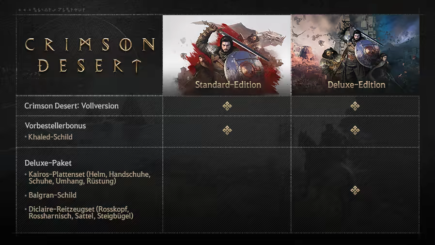 Die Deluxe‑Edition von Crimson Desert enthält die vollständige Version des Spiels sowie folgende exklusive Gegenstände: