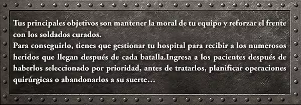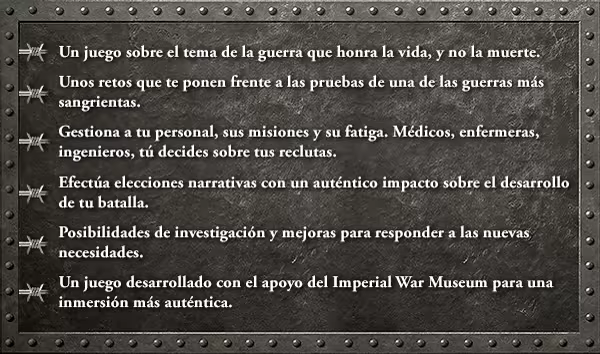 Diriges un hospital de campaña en plena Primera Guerra Mundial y tienes que tomar las decisiones necesarias para asegurar la vida de los soldados y apoyar al frente. En este juego de gestión narrativo, eres el último bastión de humanidad.
