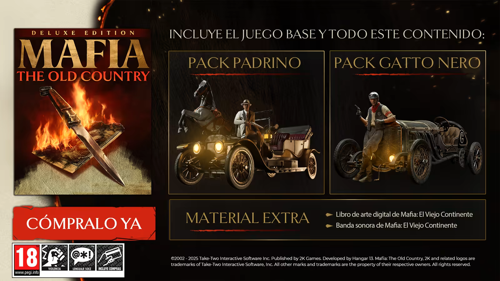 Mafia: El Viejo Continente Edición Deluxe te permite adentrarte en el submundo criminal de Sicilia al más puro estilo mafioso con una variedad de objetos extra para tu colección.