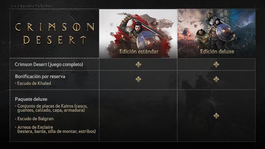 Con la edición deluxe de Crimson Desert, podrás disfrutar del juego completo y conseguir objetos exclusivos.